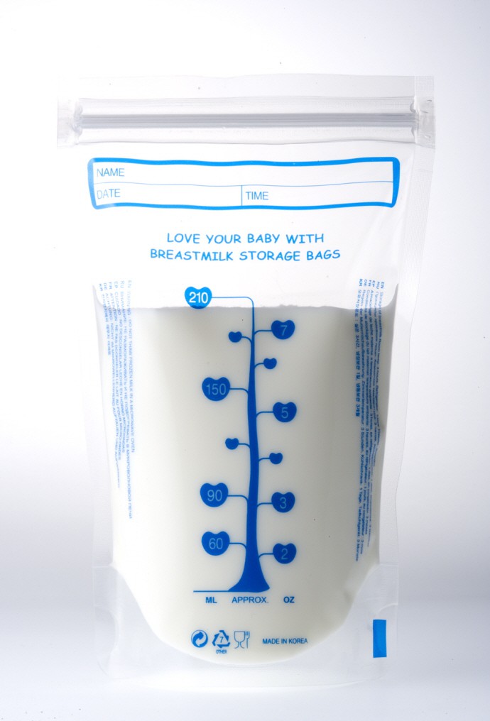 - บีบน้ำนมทิ้งก่อน 2 – 3 หยด แล้วจึงบีบเก็บใส่ภาชนะถุงเก็บน้ำนม