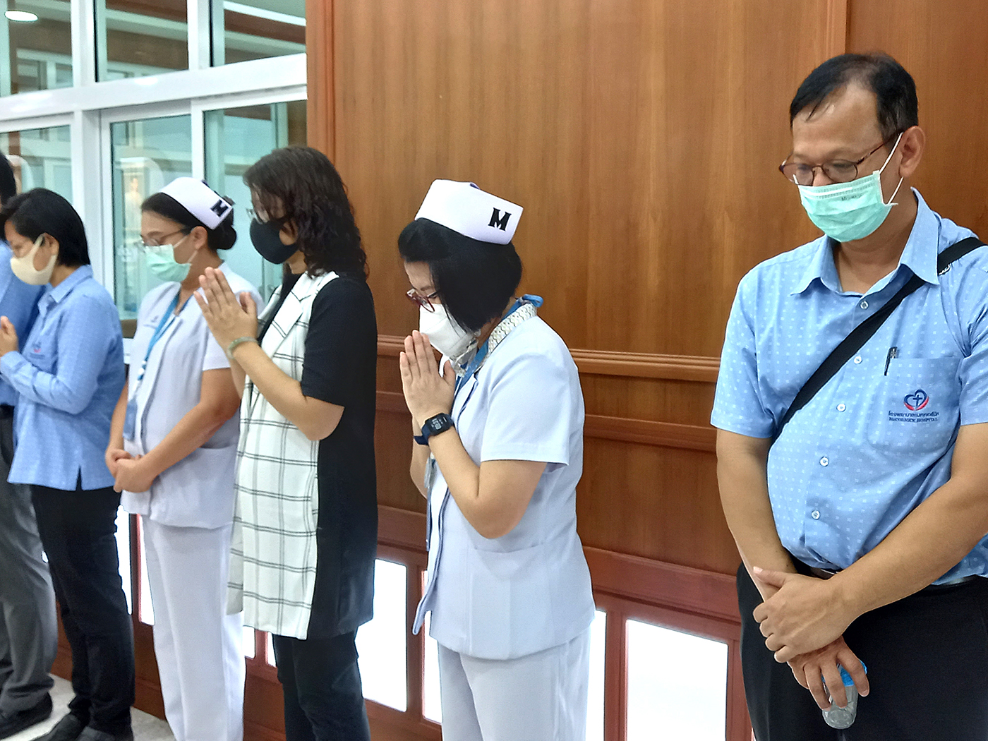 อธิษฐานขอบพระคุณพระเจ้าในโอกาสเปิดรับผู้ป่วยในเข้าพักตึกมหิดล 2 เป็นวันแรก